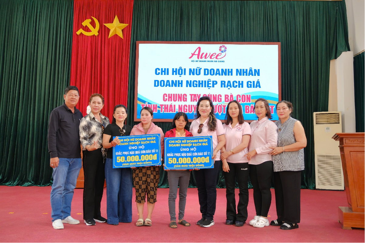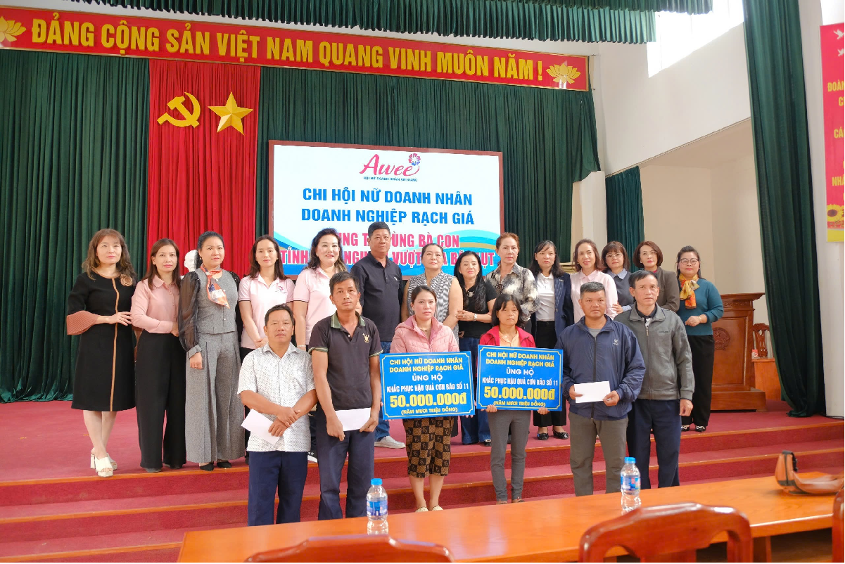 Đoàn Nữ doanh nhân Rạch Giá trao quà hỗ trợ đồng bào Thái Nguyên vượt qua bão lũ