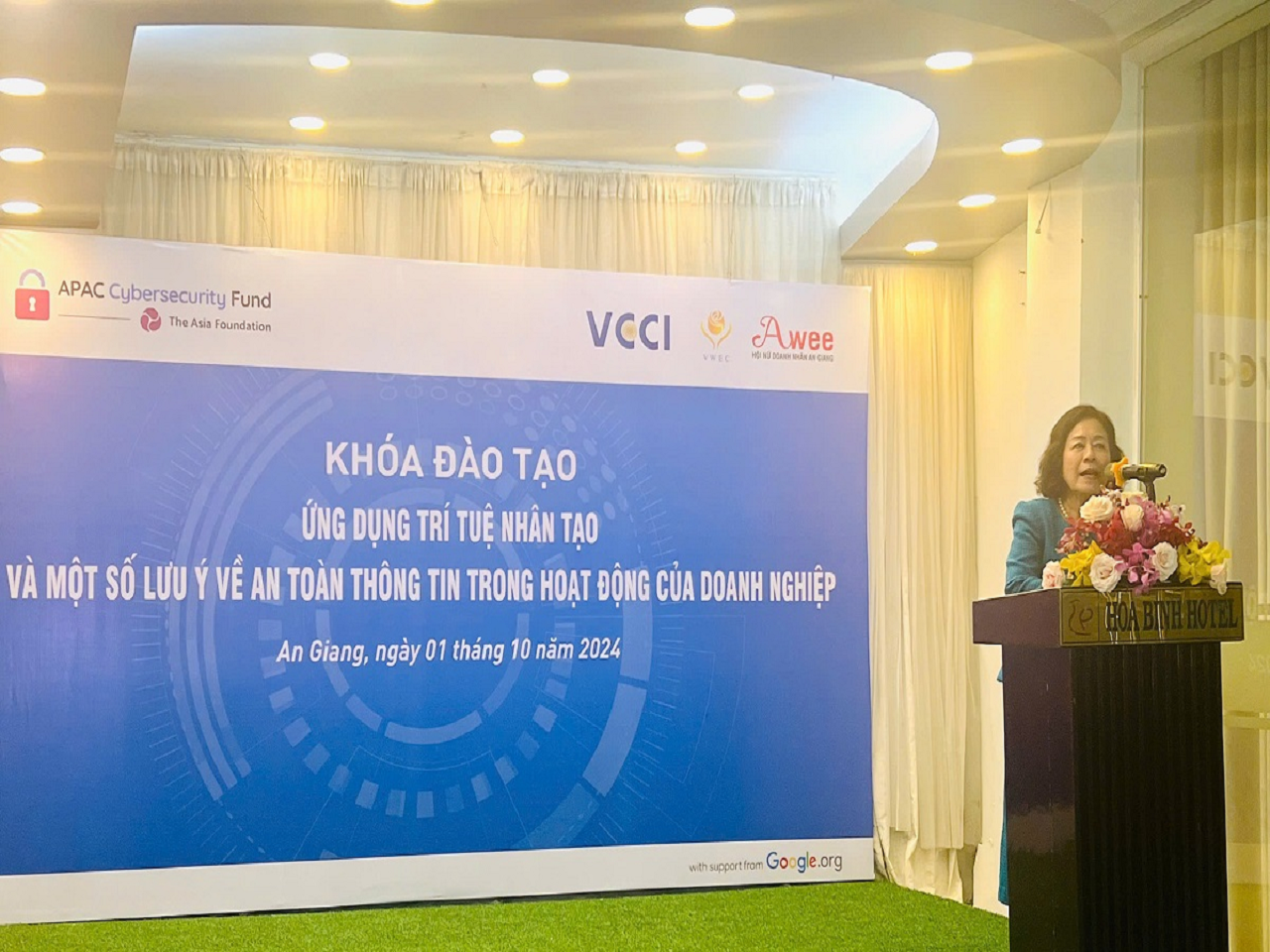 Vào ngày 01/10/2024, khóa đào tạo "Ứng dụng Trí tuệ Nhân tạo (AI) và Lưu ý về An toàn Thông tin trong Doanh nghiệp" đã diễn ra tại An Giang, được phối hợp tổ chức bởi Hội Nữ Doanh Nhân tỉnh An Giang (AWEE), Phòng Thương mại và Công nghiệp Việt Nam (VCCI),...