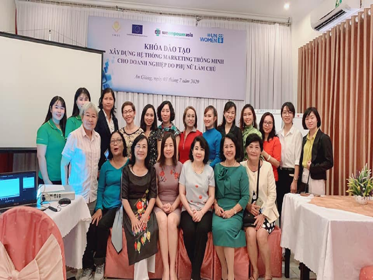 Ngày 3/7/2020 tại Ks Đông Xuyên, Tp Long Xuyên; Hội Nữ Doanh nhân tỉnh An Giang phối hợp với Hội Đồng Doanh nhân Nữ Việt Nam và Chương trình UN Women tổ chức khóa tập huấn "Xây dựng hệ thống Marketing thông minh cho doanh nghiệp phụ nữ làm chủ".