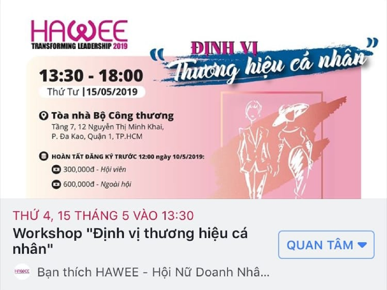 Tiếp nối thành công của Diễn đàn “Lãnh đạo tạo đột phá: Khởi nguồn từ bản thân” tháng 3 vừa qua, Chương trình Chuyển hóa lãnh đạo (HAWEE transforming leadership) quay trở lại với chủ đề “ ĐỊNH VỊ THƯƠNG HIỆU CÁ NHÂN ”